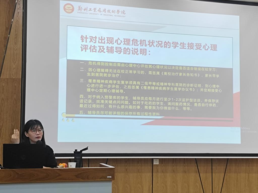 为进一步提升学校辅导员心理健康教育与咨询工作技能,加强辅导员对心理危机的理解与干预能力,7月11日上午,我校举办了以“大学生心理危机预防、评估与干预”为主题的专题培训,本次报告由大学生心理健康中心主任李琨煜主讲。